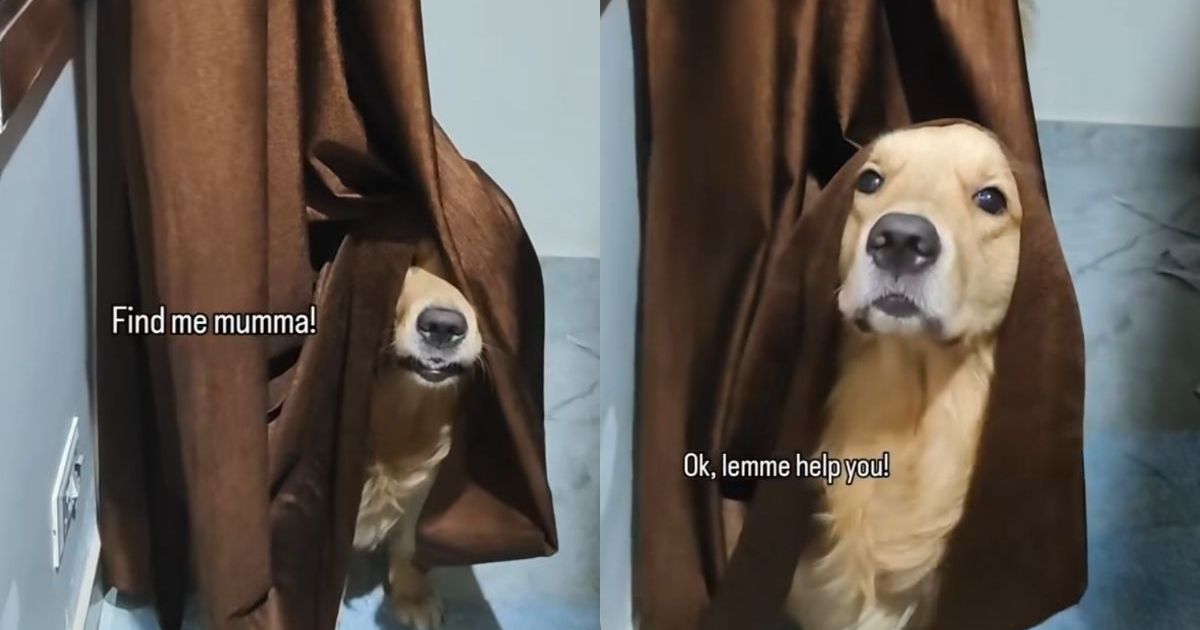 Muffin, the Golden Retriever, has captured hearts on Instagram for his less-than-sneaky version of hide and seek. In the video, Muffin is seen attempting to “hide” from his owner, but it’s clear he doesn’t fully grasp the concept. Rather than finding a well-concealed spot, Muffin plants himself behind a curtain, with his body, tail, and even his head still visibly sticking out.